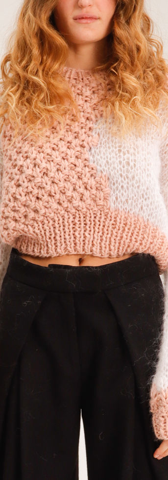 Maglia crop handmade , realizzata utilizzando due filati con due diversi pesi, che creano un effetto particolare e speciale.
