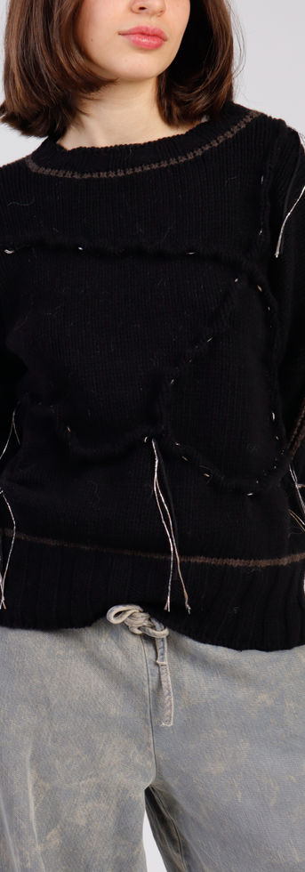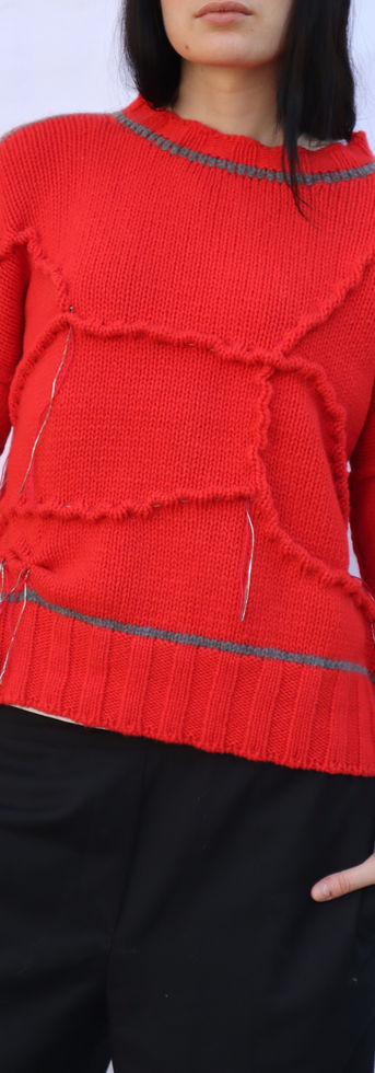 Maglia in lana e cachemire, forma scatola, intersio geometrico.