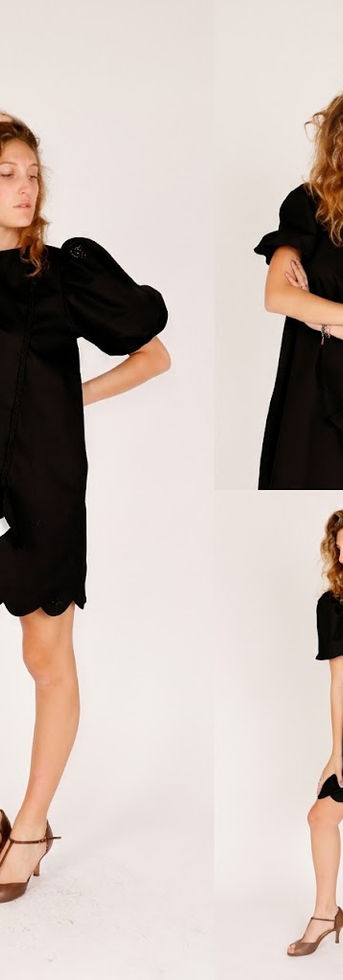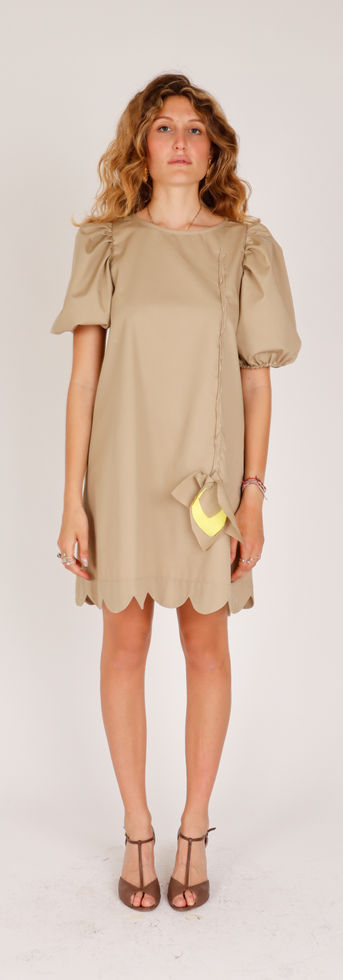 Abito corto dalla particolare finitura a "merletto" Maniche corte a "palloncino"